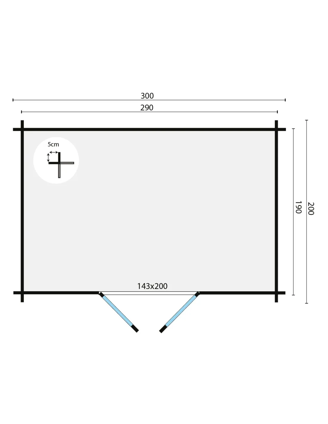 • Dimensions extérieures : largeur 3,00 m x profondeur 2,00 m