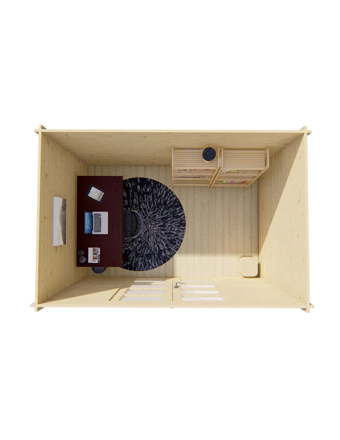 Petit abri de jardin avec toit plat vu du dessus sans toiture