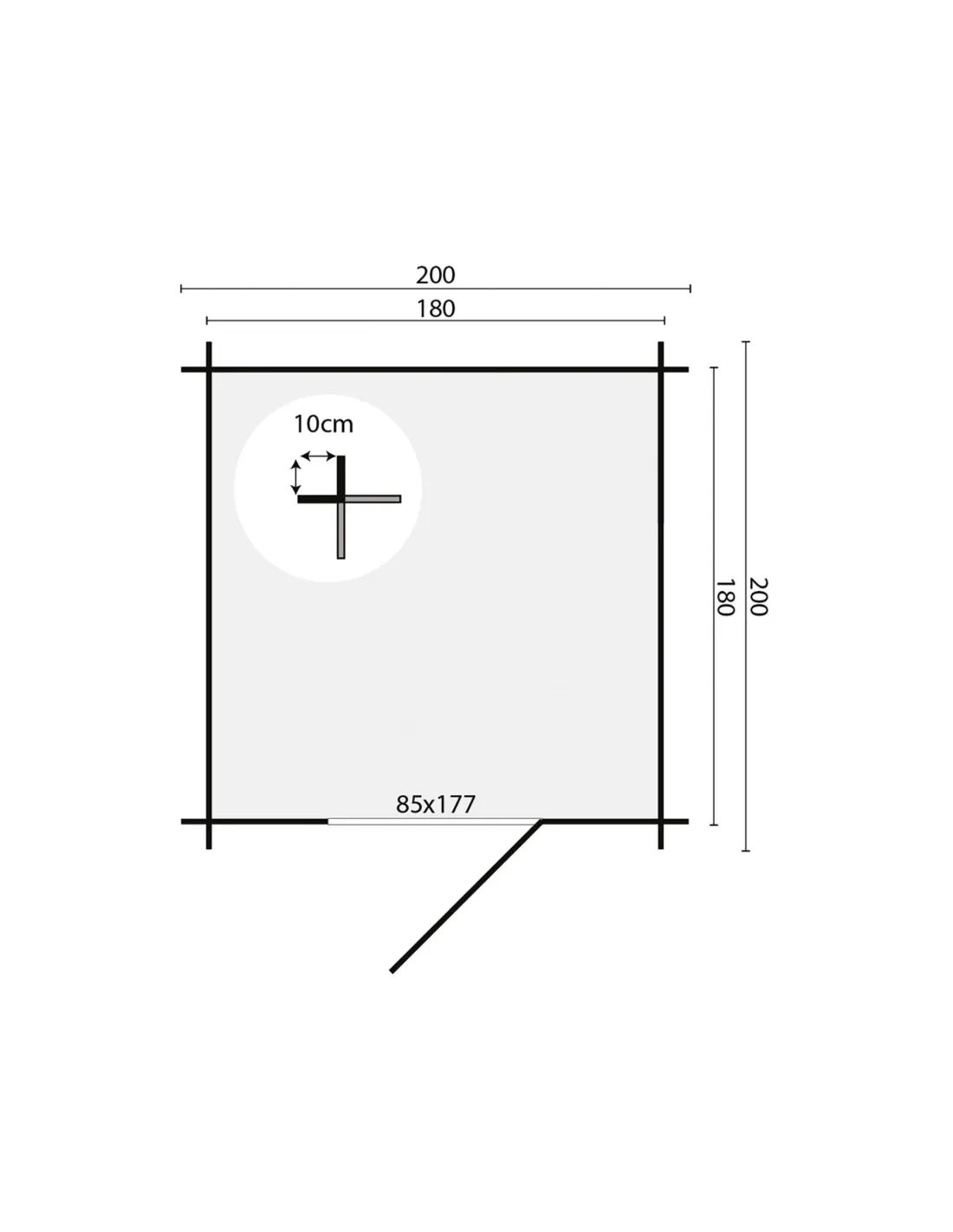 • Dimensions extérieures : 2,00 m de largeur x 2,00 m de profondeur