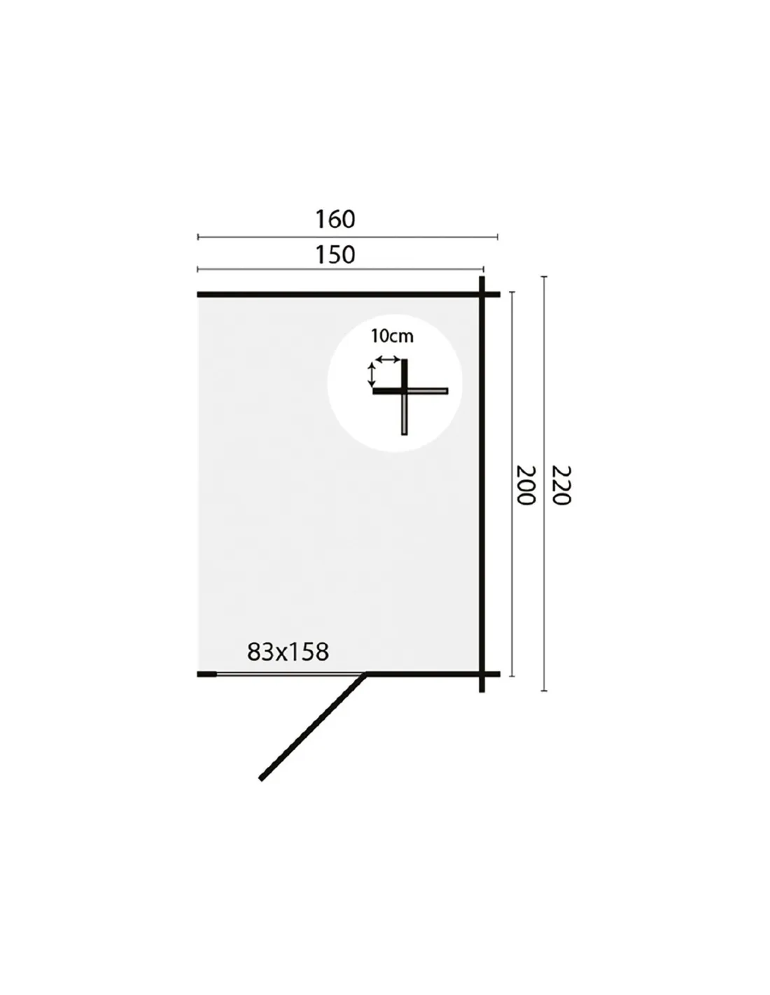 Petite annexe avec porte à placer sur le côté de votre abris de jardin. Dimensions: largeur de 160 cm sur une profondeur de 220 cm. Hauteur de faite de 188 cm.
