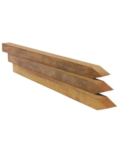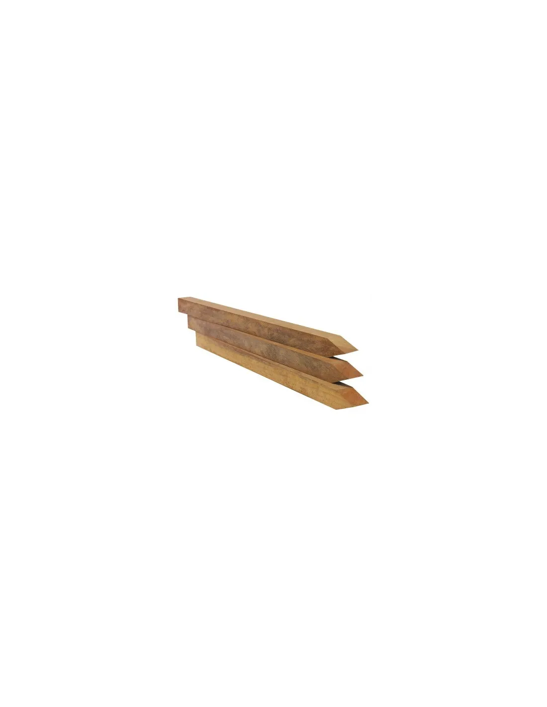Piquets pointus en Azobé, parfaits pour la retenue de terre, les murs de soutènement et les aménagements paysagers. Disponibles en plusieurs tailles (hauteur de 40 à 200 cm ; sections 4x4, 5x5, 6x6 cm), ce bois exotique ultra dense (≈1000-1100 kg/m³) est naturellement imputrescible, sans besoin de traitement chimique, résistant aux insectes, champignons et à l’humidité. Durable et robuste, il convient parfaitement aux environnements extérieurs exigeants. Avec le temps, il développe une belle patine grise naturelle, alliant esthétique rustique et grande longévité. Ces piquets s’adaptent à tous vos projets d’aménagement extérieur en offrant une solution écologique, stable et résistante.
