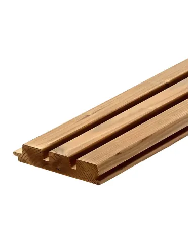 Le pofil Triple 142 x 26 mm en pin Thermo chauffé est un bardage Thermowood® durable et écologique. Fabriqué à partir d'épicéa nordique de première qualité, il présente un design 3D avec deux profondes rainures pour une installation facile et un aspect moderne. Exempt de produits chimiques et validé par une certification ThermoWood®, ce bardage nécessite peu d'entretien et respecte l'environnement.