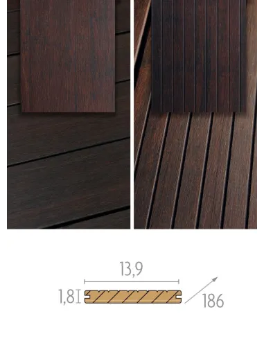 Les planches de terrasse en bambou foncé, avec fixation invisible Cobra Clips, combinent durabilité et élégance. Mesurant 13,9 cm de large pour 1,86 m de long, elles offrent esthétique moderne et résistance supérieure (durabilité de plus de 25 ans) sans vis apparentes. Ce choix écoresponsable transforme les espaces extérieurs en lieux élégants et contemporains, adaptés à tout projet de terrasse.