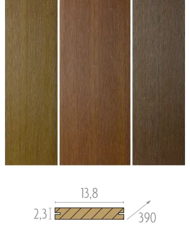 Choisissez parmi un éventail de teintes attrayantes bicolores : Ipé Red, Ipé Yellow, et Ipé Brown. Chaque couleur a été soigneusement sélectionnée pour correspondre à différents styles et préférences. Ipé Red, par exemple, est idéale pour ceux qui apprécient un aspect chaleureux et accueillant, tandis que Ipé Yellow apporte une touche de lumière et d'éclat, et Ipé Brown évoque une atmosphère plus traditionnelle et intemporelle.