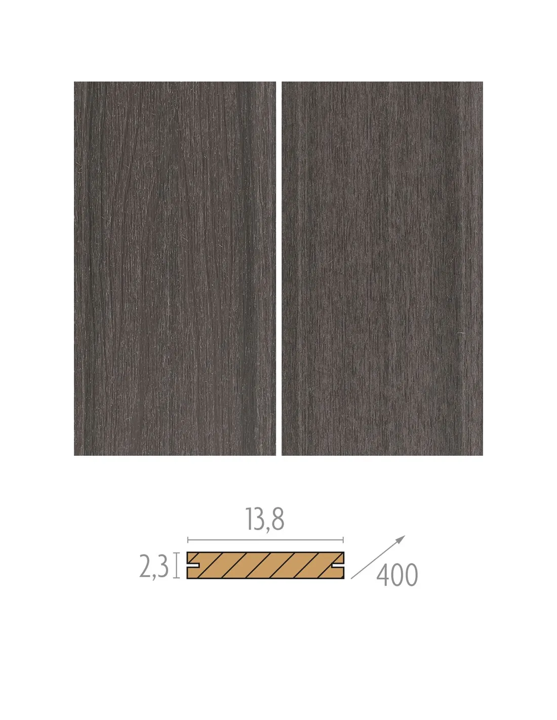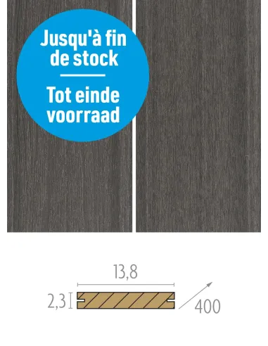 Les planches de terrasse en bois composite Vintage possèdent des dimensions de 23 x 138 mm et une longueur standard de 4 mètres, adaptées à diverses configurations de terrasse. Conçues pour une installation avec des clips Cobra hybride, ces planches assurent une fixation invisible qui non seulement améliore l'esthétique du deck mais prolonge également sa durabilité en évitant l’exposition des fixations aux éléments.