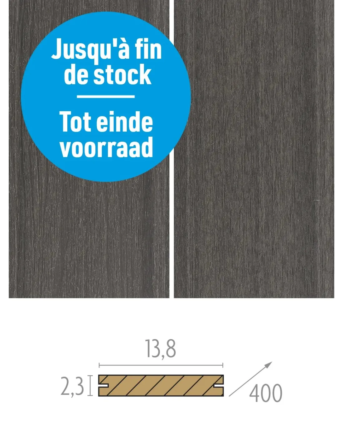 Les planches de terrasse en bois composite Vintage, fixées avec des clips Cobra hybride, d'une largeur de 13,8 cm, une épaisseur de 2,3 cm et 4 m de longueur. Elles combinent esthétique raffinée, fixation invisible, et facilité d’entretien. Résistantes et sécuritaires, elles sont idéales pour des terrasses modernes et durables.