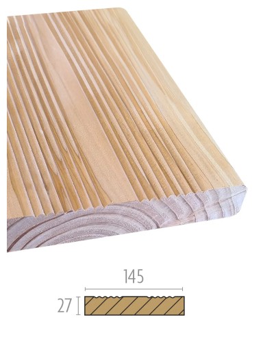 Les planches de terrasse en Douglas français, de 14,5 cm de largeur et 2,7 cm d'épaisseur.
