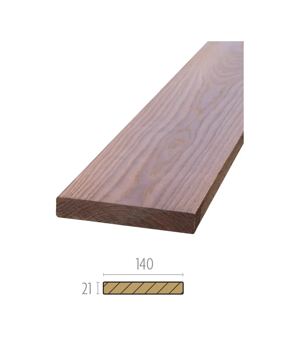 Dimensions : épaisseur 21 mm, largeur 140 mm, longueurs variables de ±80 à ±240 cm selon le stock.
