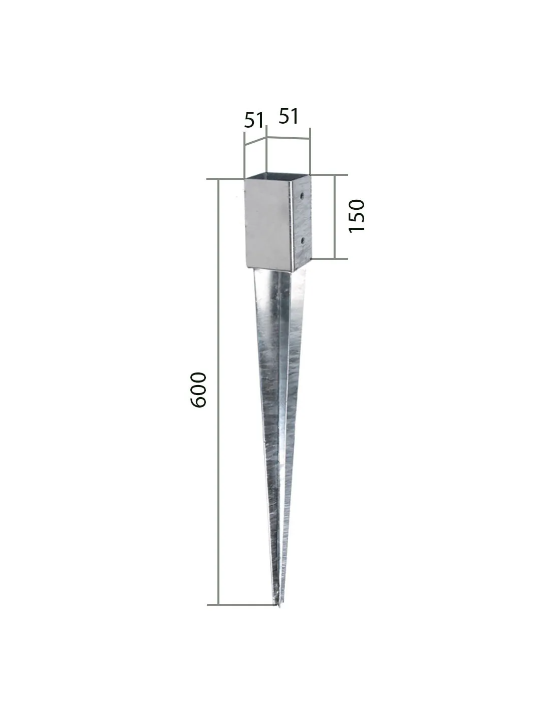 Pointe en fer idéale pour la pose de poteaux de palissade de jardin, le support métallique permet d'insérer différentes tailles de poteaux de 7cm à 14cm.