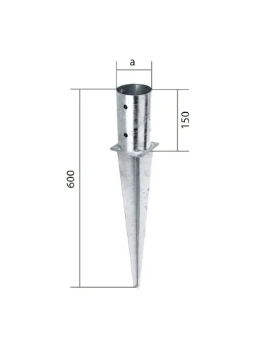 Pointe en fer pour fixer des poteaux rond dans la terre.