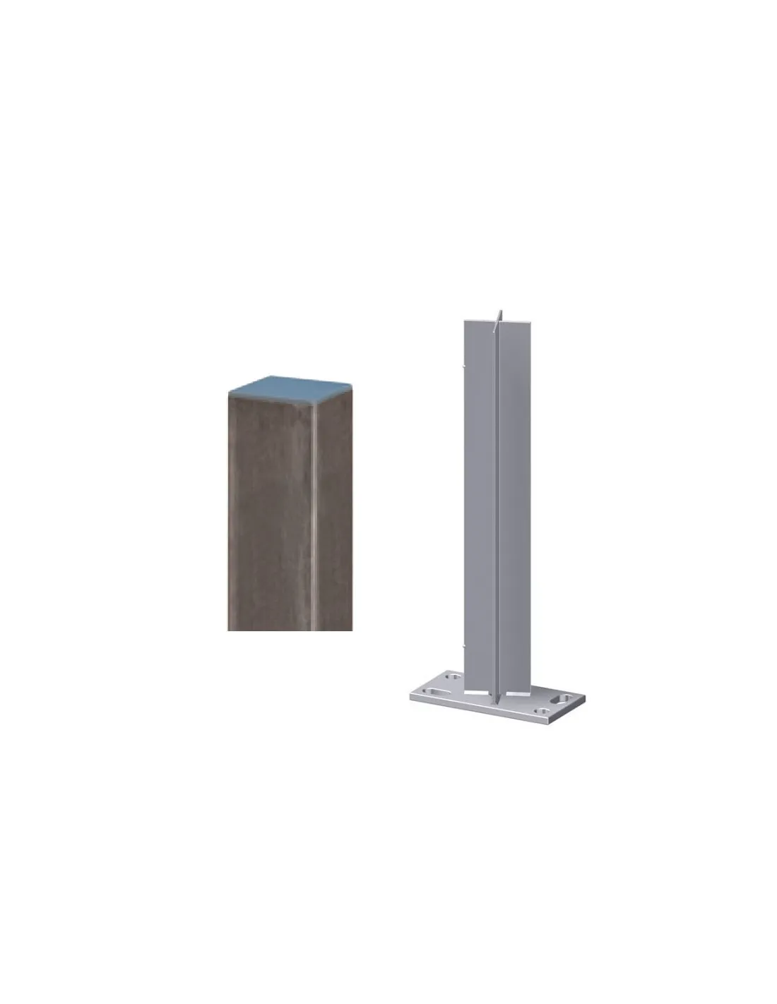 Pour les poteaux en Bois Composite, veuillez commander séparément le support de poteau à cheviller, réf. 2098 (platine de fixation 8 x 16 cm). Préparer les poteaux en Bois Composite pour le montage: Enfoncer le support de poteau dans le noyau en métal octogonal du poteau. Les points de soudure sur les supports de poteau permettent une "adhérence" finale avec le poteau. Si un support de poteau ne rentre pas dans le noyau en métal du poteau creux, limer légèrement les points de soudure. Placer les poteaux bien au centre des fondations puis les fixer avec les 4 tiges filetées du kit de fixation chimique.