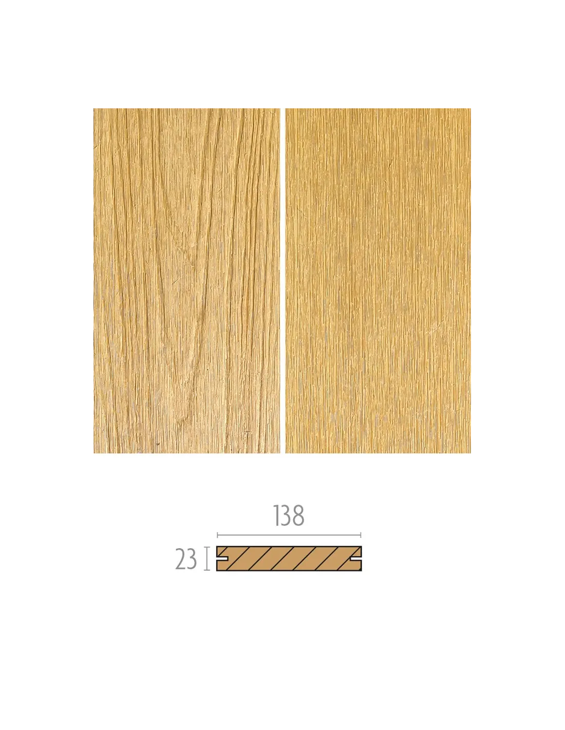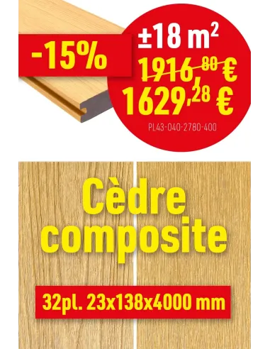 Les lames de terrasse de bois composite imitation cèdre ont deux faces ; l’une légèrement structurée par des lignes fibreuses et dans le sens du bois, l’autre face imite parfaitement la structure d’un bois classique et naturel. Les planches sont à fixer avec des clips Cobra hybride. Les planches mesurent 23 x 138 mm sur une longueur de 4 mètres. Elles sont disponibles en couleur Cèdre.