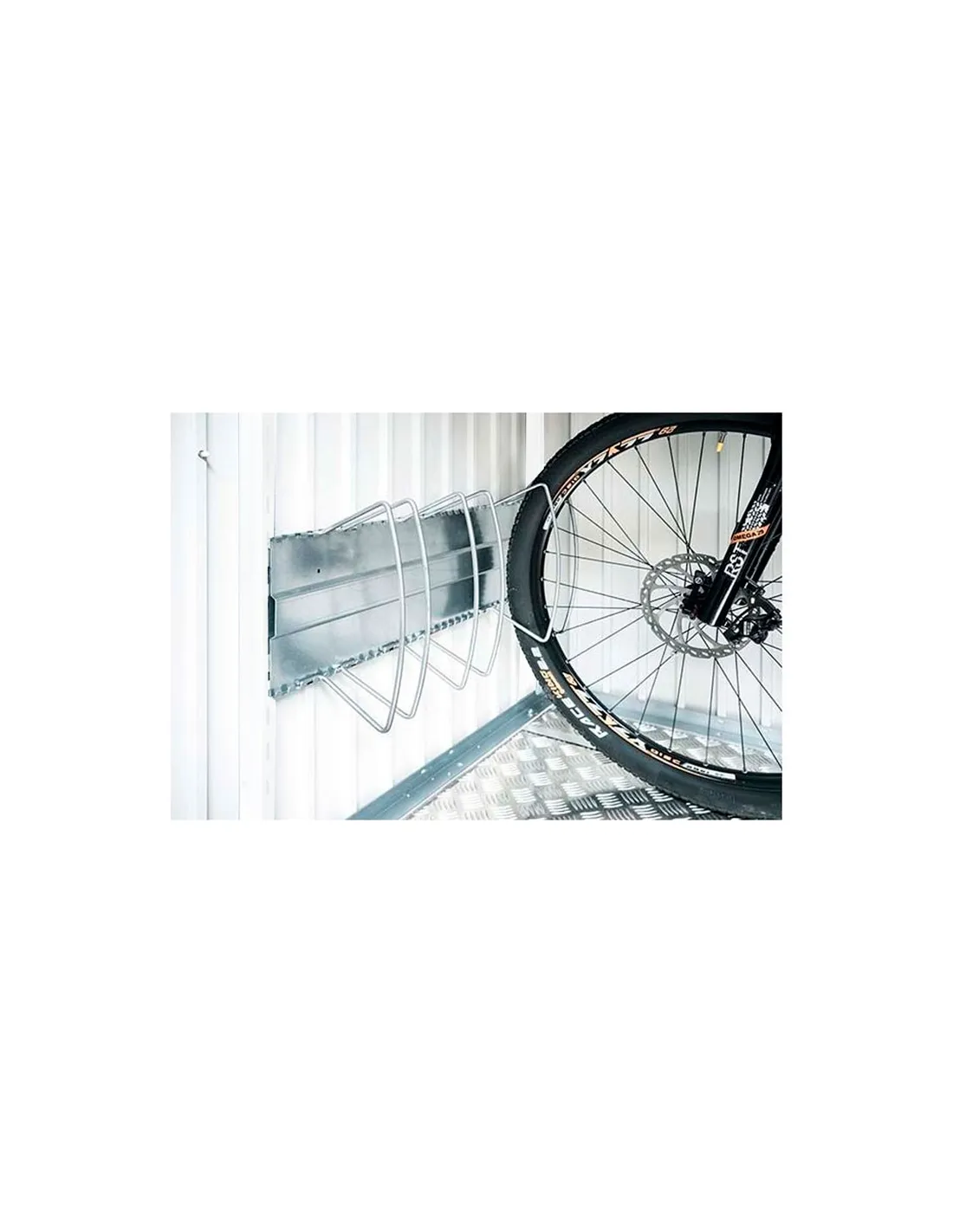 Rangement optimal des vélos grâce au support ajustable. La plaque de base est accrochée sur 2 fixations verticales.