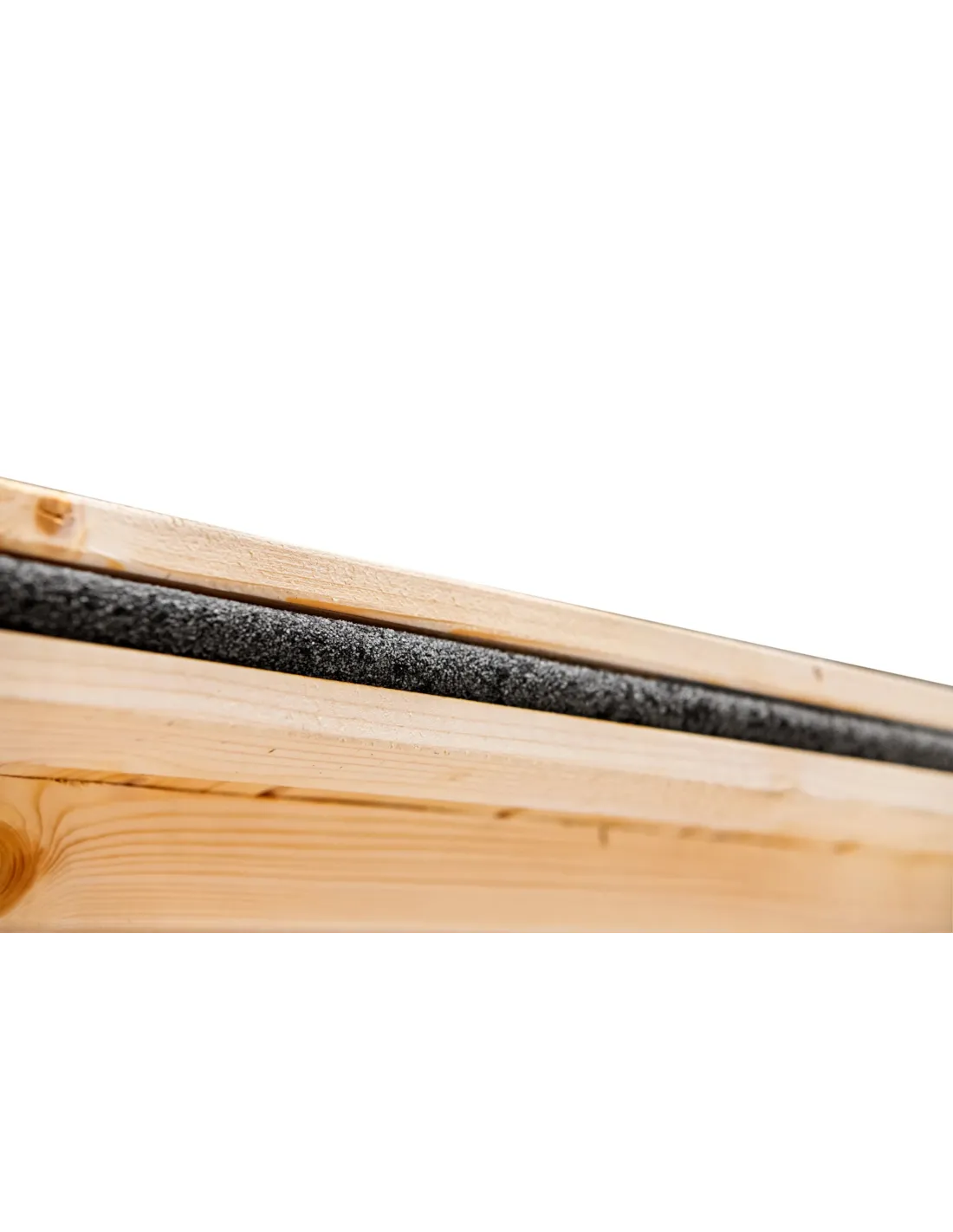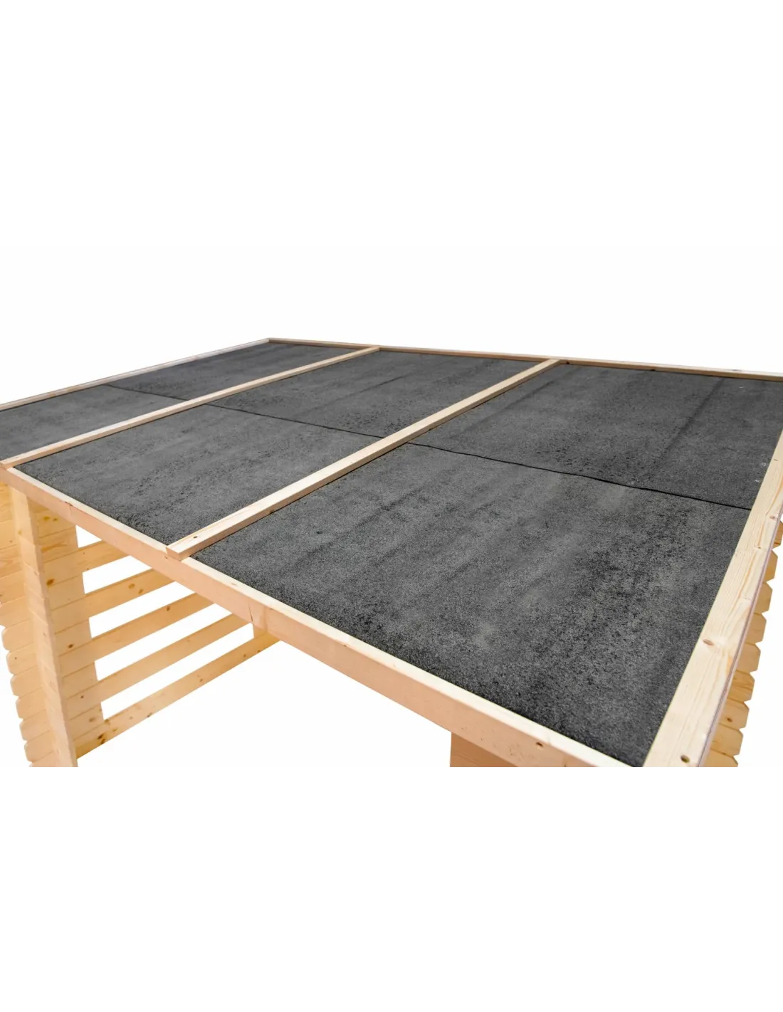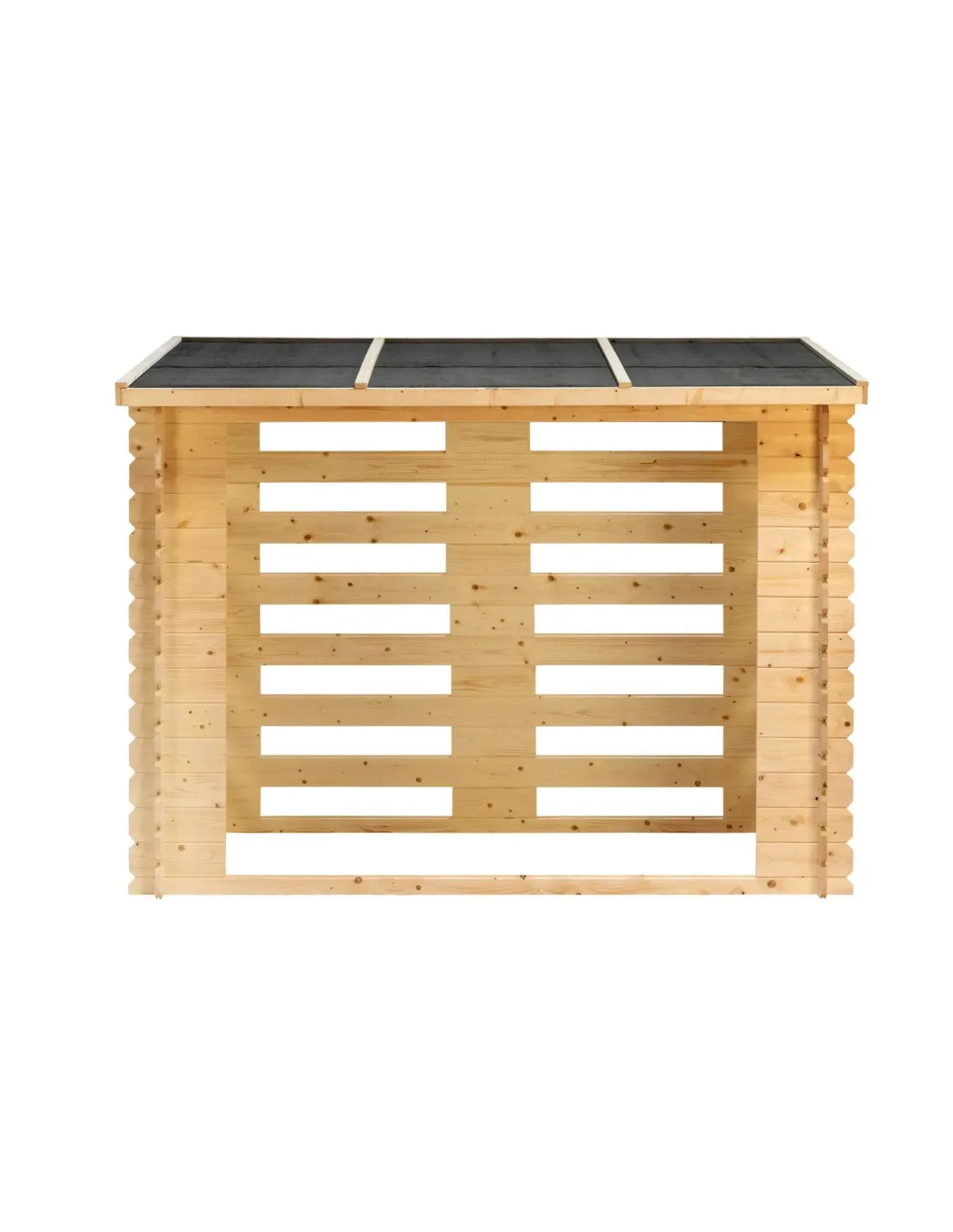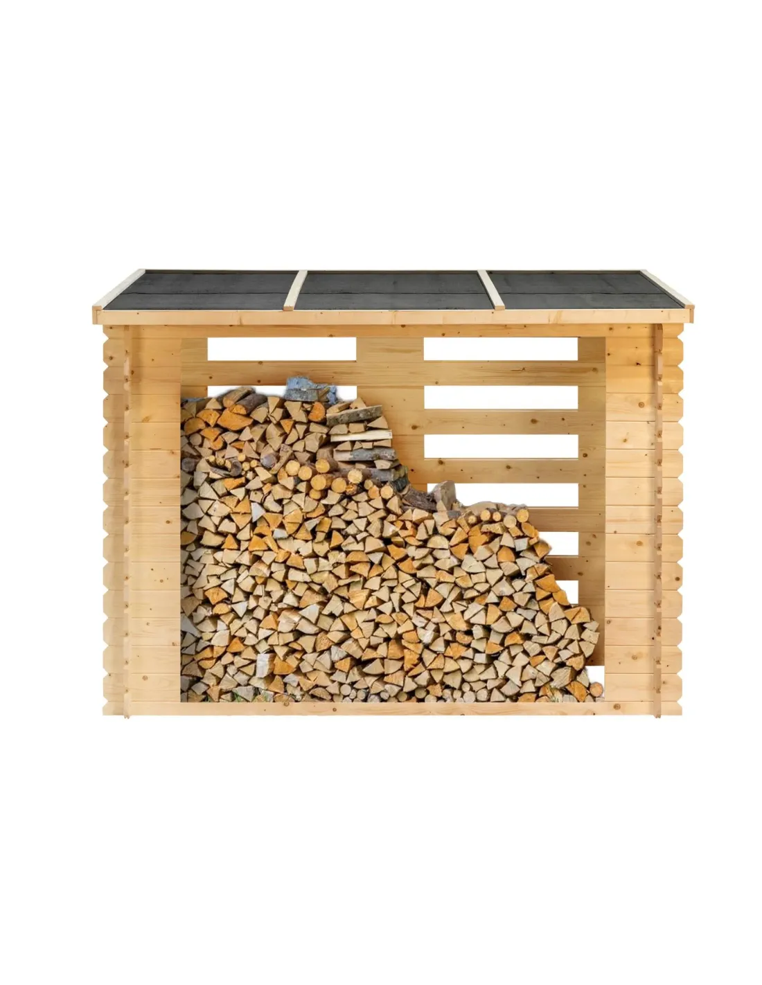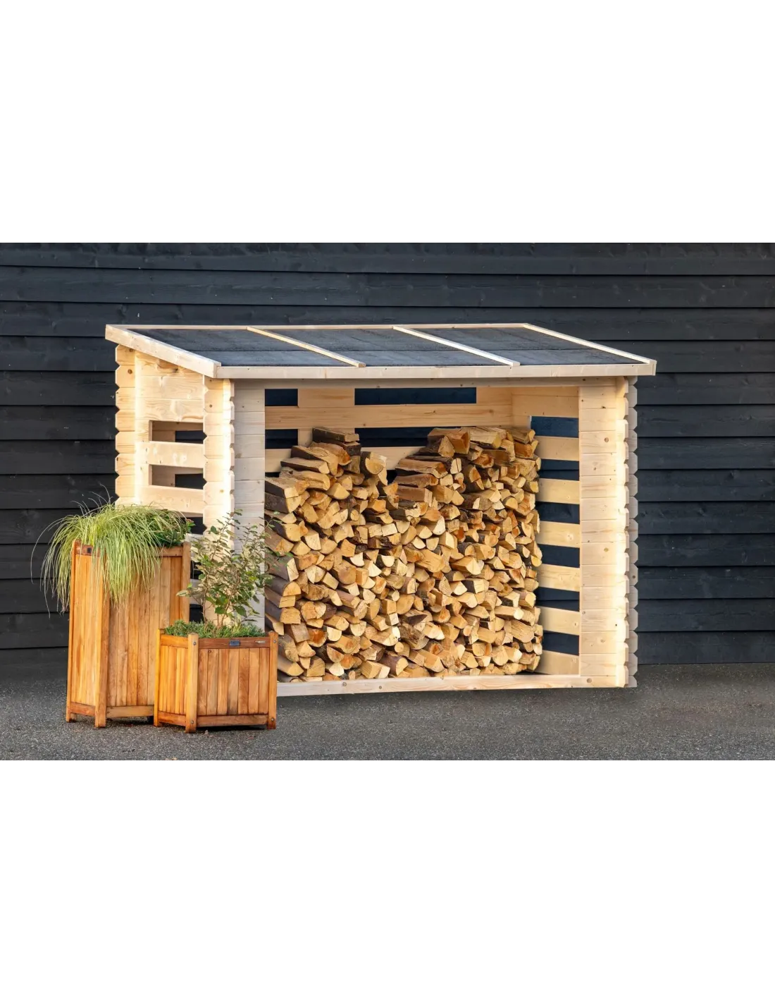 Notre produit arbore un toit à pente légère incliné à 7 degrés, optimal pour l'écoulement de l'eau, et est couvert de feutre de toiture afin de garantir une protection contre les intempéries. Avec un bois pré-séché, soyez assuré que votre bois restera dans un état impeccable.