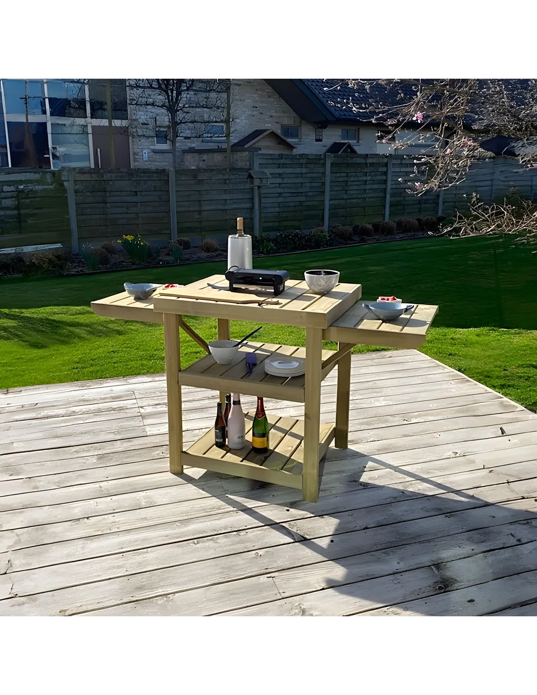 - Peut être utilisé à côté du barbecue pour y mettre vos commodités