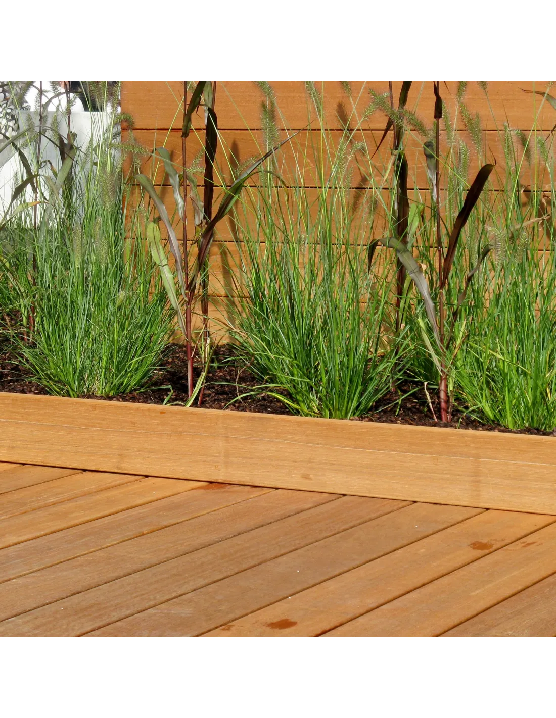 Depuis quelques années ce type de terrasse est très à la mode. Son coût élevé s’explique grâce à sa beauté et surtout à sa durabilité de classe 1 qui est la plus élevée par rapport à toutes les autres essences de planches ou lames de terrasse (au minimum 25 ans). De plus, sa beauté tropicale lui donne une grande impression de naturel en s’intégrant parfaitement dans l’environnement de votre jardin.