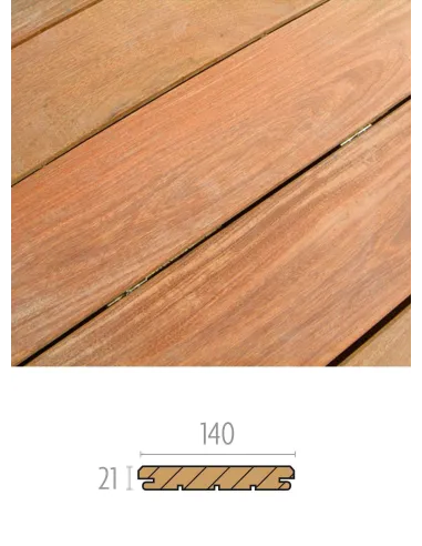 Les lames de terrasse en bois exotique Ipé font 21 mm d'épaisseur sur 140 mm de largeur, elles sont lisses, en provenance du Brésil et sont fournies soit avec vis soit avec clips (B-fix). Classe de durabilité : 1, plus de 25 ans.