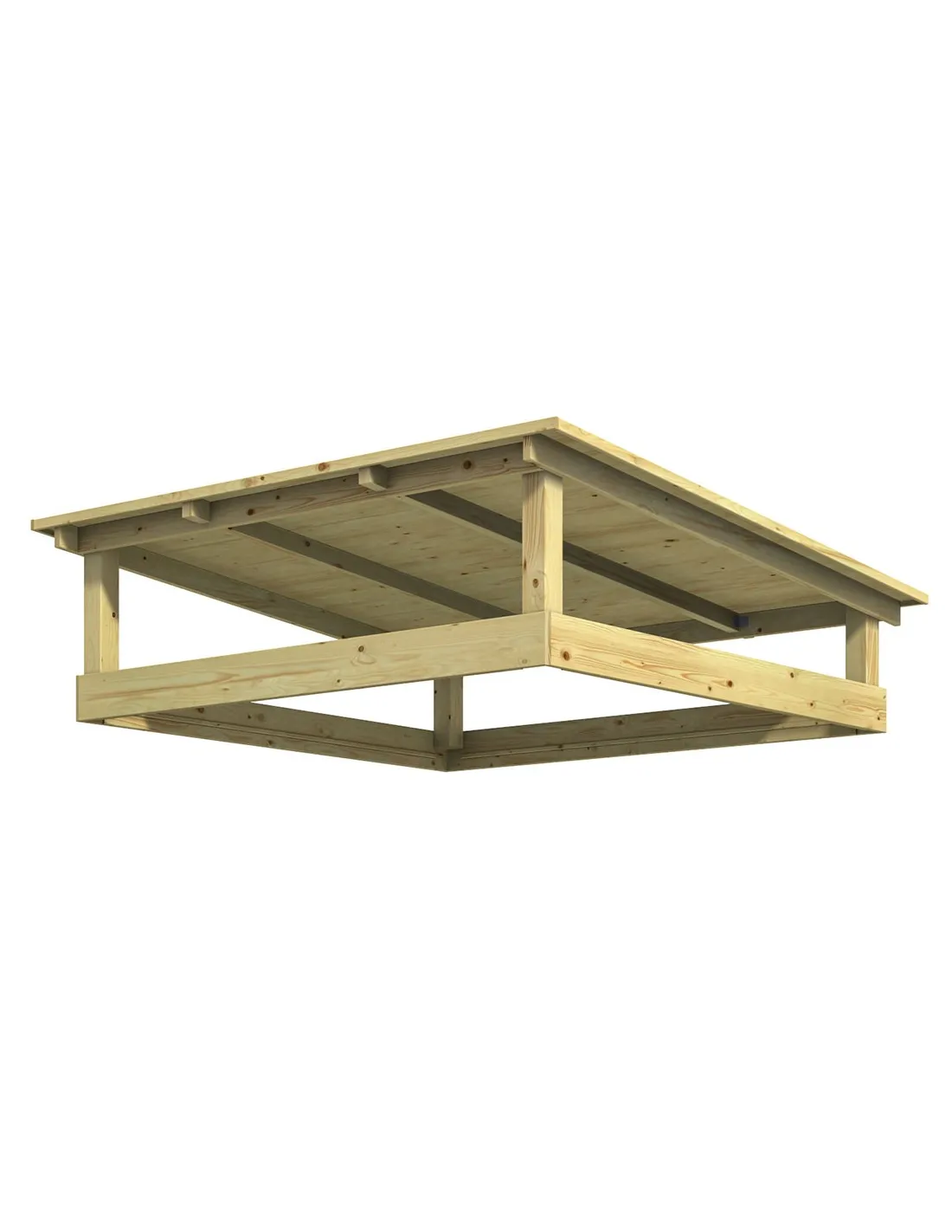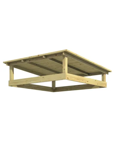 Comme tous les éléments en bois, il est fabriqué en bois de conifères FSC® imprégné en autoclave sans chrome. Recouvrez le toit en bois de bardeaux bitumés par exemple. Pour le toit à une pente GIGA, vous avez besoin d'un revêtement de toit suffisant pour environ 5 m².