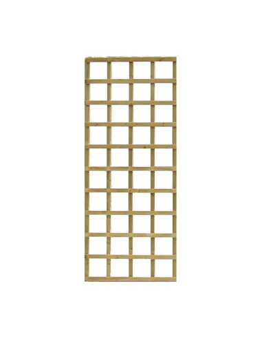 Le treillage de la gamme Clematite est proposé en SRN et atteint une hauteur de 180 cm. Fabriqué en lattes assemblées, en mailles carrées de pin 13 x 13 cm.