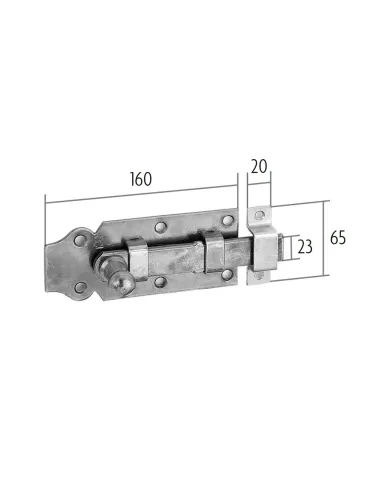 Verrou de porte coulissant avec poignée en forme de boule. Avec trous de vis noyés. Nombre de trous: 6 / 2