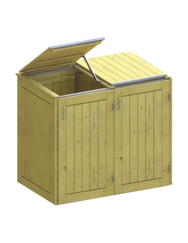 Beschikbaar met (150 x 90 x 129 cm) of zonder plantenbak (139 x 84 x 125 cm). Alle afvalcontainer ombouwen hebben een deksel voorzien van een telescoophangscharnier en een handgreep (zonder bak), een verstelbare boxhouder en een wielgeleider. De deuren zijn gemaakt van roestvrij staal en zijn aan de binnenkant versterkt. Geproduceerd in verschillende materialen: HPL (leisteen of grijs), RVS, geïmpregneerd SRN-hout, exotisch FSC-hout.