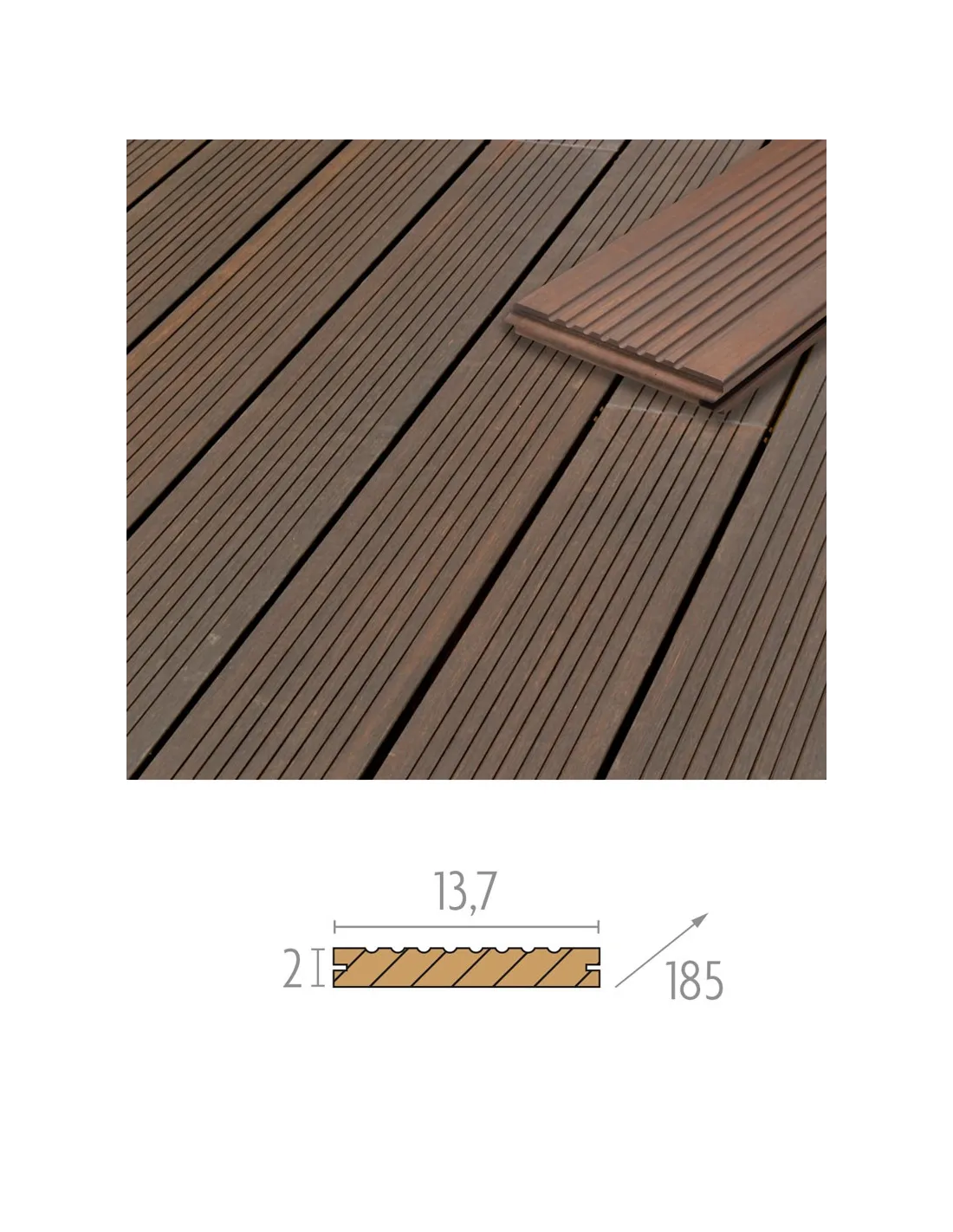 - Een vierkante meter (m2) terras in kit (met ijzerwaren en onderbalken) omvat: