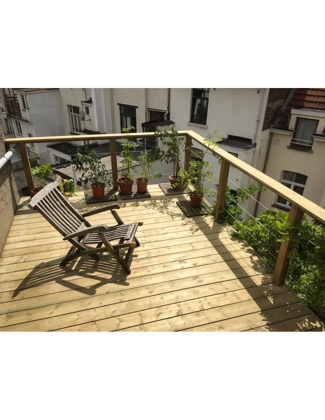 - 7 lopende meter Eik houten terrasplanken en 3 meter Pijnboom houten balken. Met 40 schroeven.