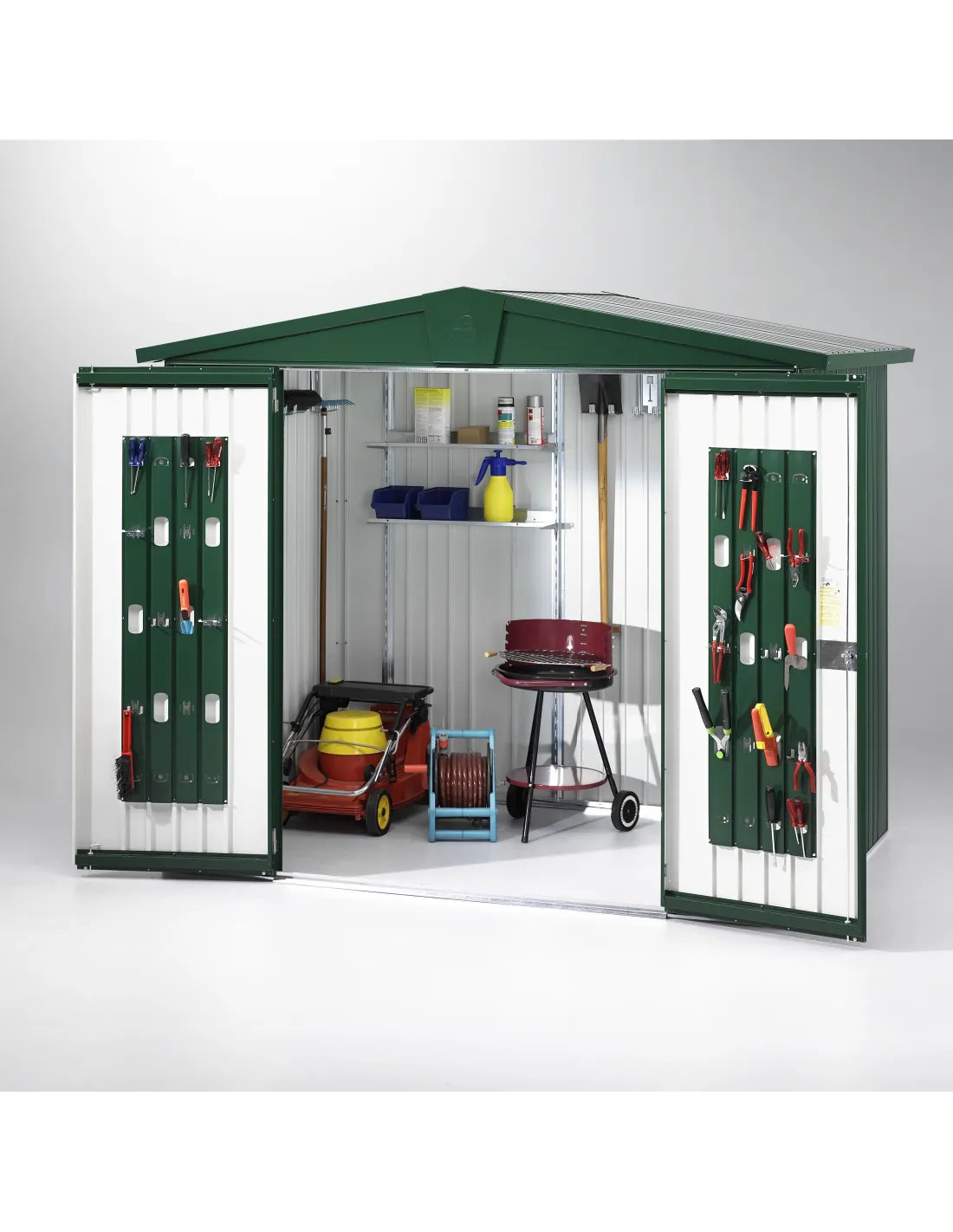 - 4 gereedschaphouders (voor het ophangen van spades, rieken, slangen etc.)