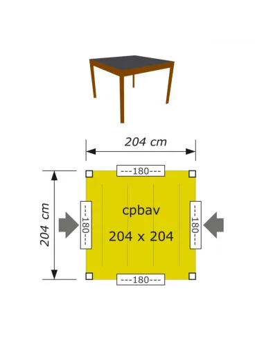 Beschikbare afmetingen (cm): 204x204, 261x261, 318x318, 396x396, 510x510.