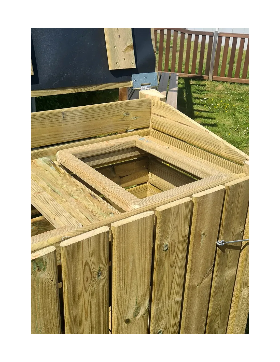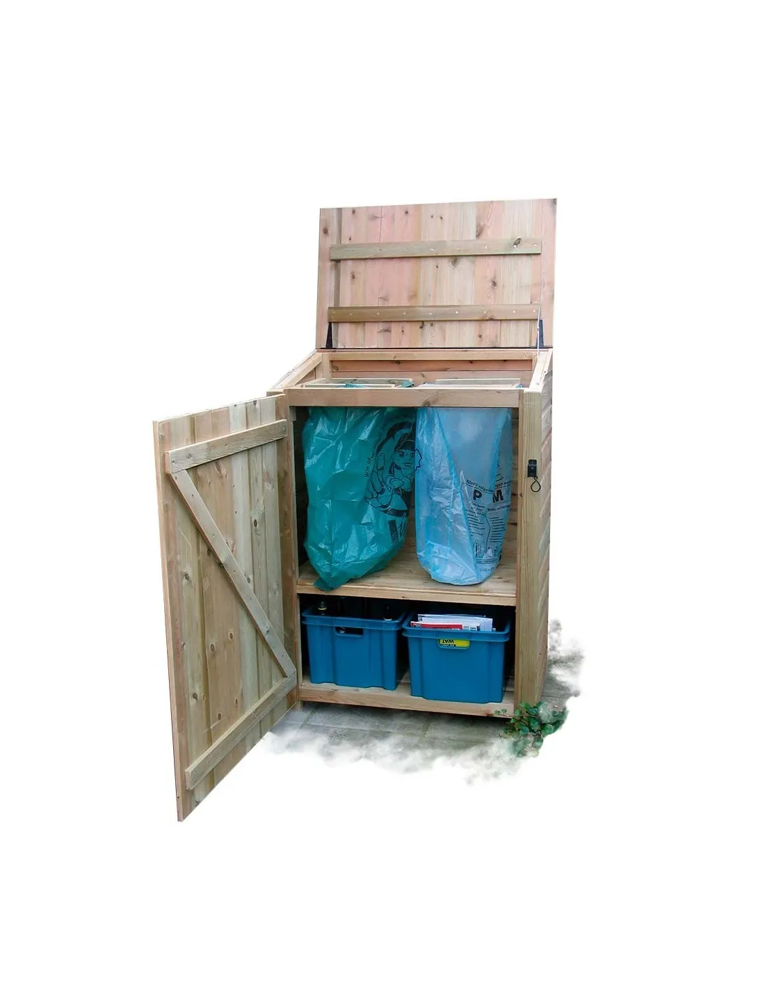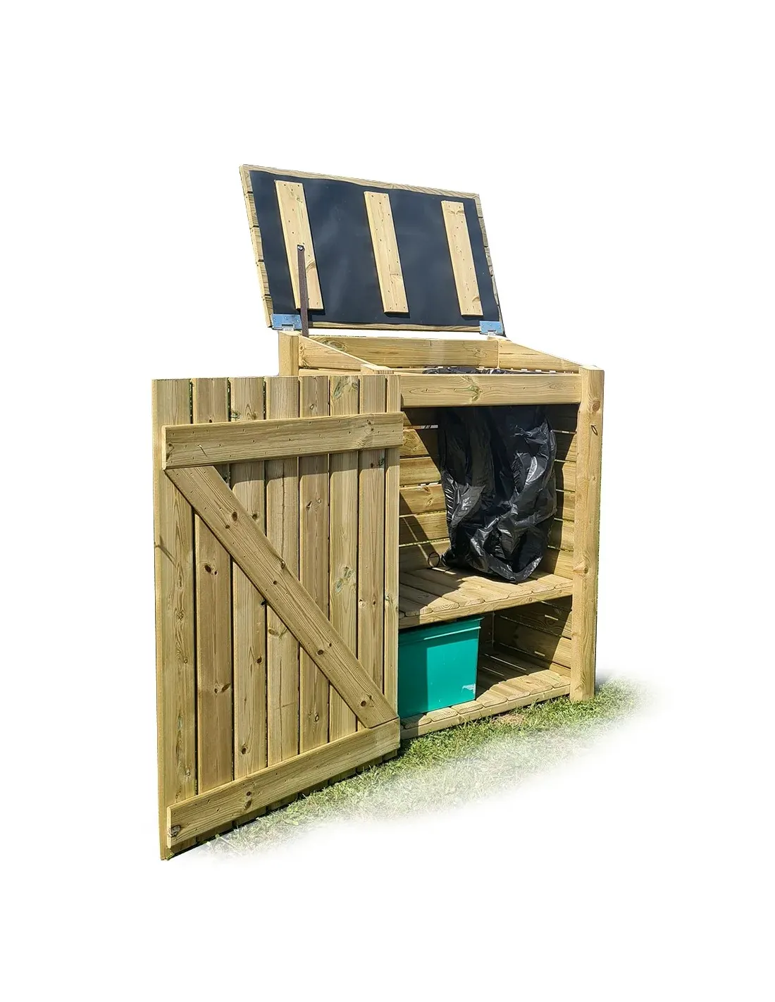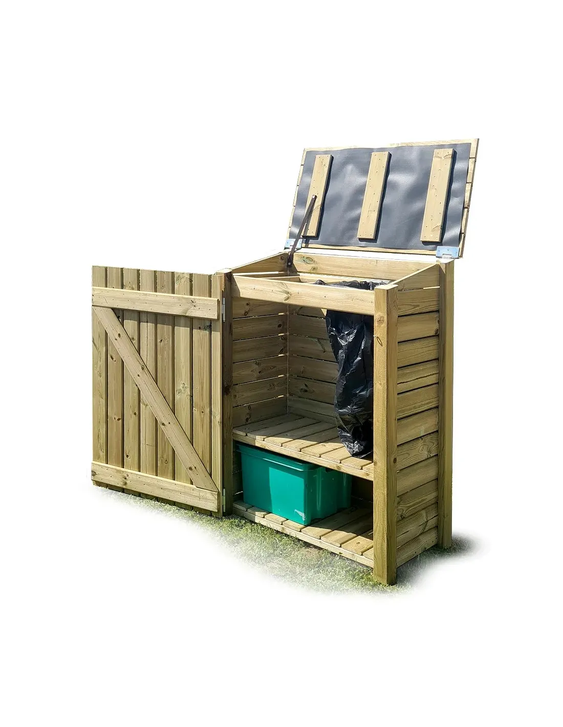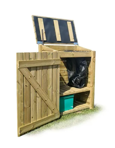 Optimaliseer de organisatie van je tuin met deze houten buitencontainer, gemaakt van Noord-Europees Rood Grenenhout dat door drukimpregnatie behandeld is. Perfect om je vuilnisbakken en -zakken op een elegante manier te verbergen en ze tegelijkertijd te beschermen tegen slecht weer en dieren. Deze container combineert stevigheid, duurzaamheid en een natuurlijke uitstraling.