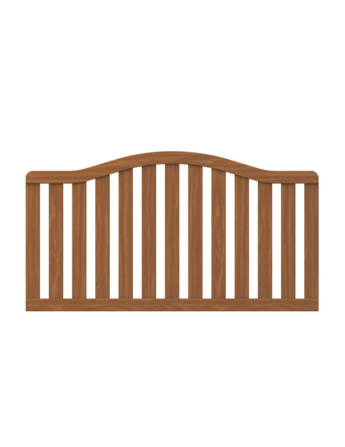Deze convexe schutting, gemaakt van gecertificeerd FSC® exotisch hout, combineert duurzaamheid met esthetiek. Het kenmerkende ontwerp omvat een strategisch geplaatste opening in het onderste deel van de dwarsbalken, waardoor water efficiënt kan wegstromen en ophoping van vocht wordt voorkomen. Het convexe paneel versterkt de unieke en verfijnde uitstraling.