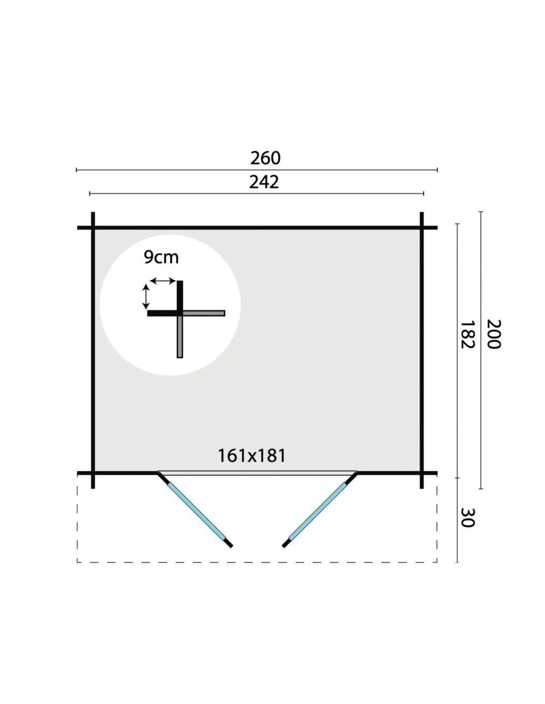 Buitenafmetingen: 260 x 200 cm