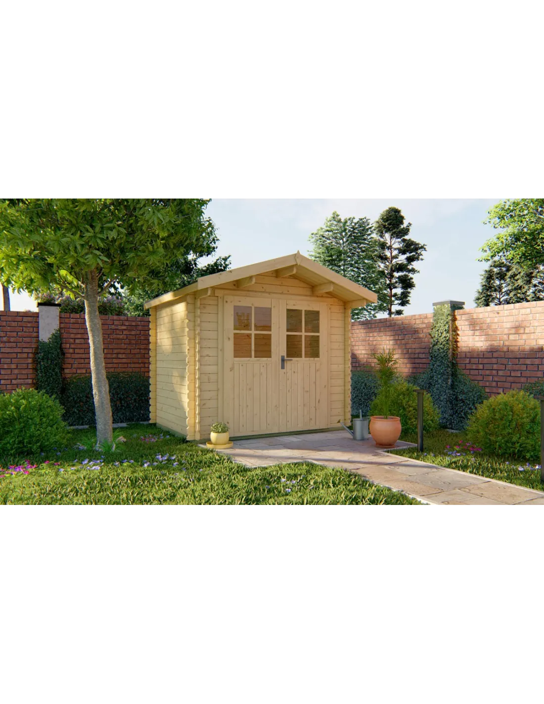 Dit kleine houten tuinhuisje is ideaal voor beperkte ruimtes en biedt tegelijkertijd een praktische en esthetische opbergoplossing. Het is uitgerust met dubbele glazen deuren die de toegang vergemakkelijken en natuurlijk licht binnenlaten.