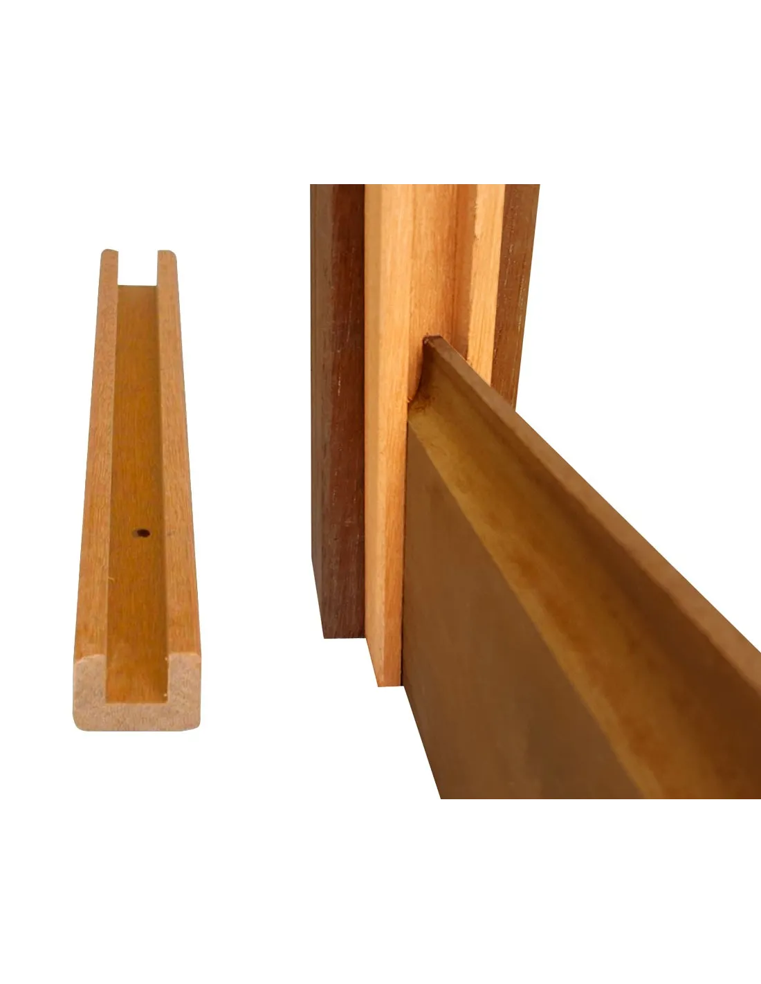U-profiel van exotisch hout (35 x 45 mm x 2 m) voor het verbinden van gegroefde en getongde planken van exotisch hout.