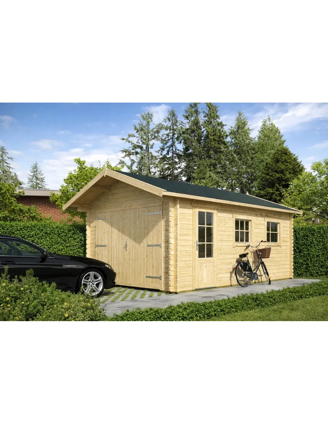 Deze houten garage met zadeldak biedt de ideale oplossing voor het beschermen van uw voertuig en tegelijkertijd een veelzijdige ruimte voor klusjes of opslag. Gemaakt van gedroogd vurenhout (behandeld of onbehandeld naar keuze) biedt het een natuurlijke, robuuste en duurzame structuur, die u naar wens kunt aanpassen.