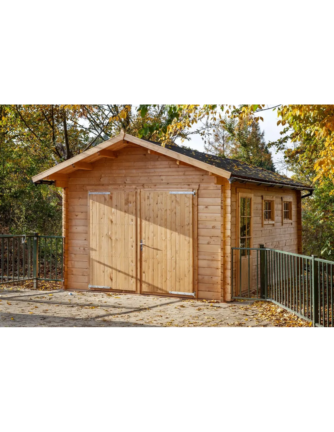 Houten garage voor auto en werkplaats met zadeldak – Functioneel en flexibel