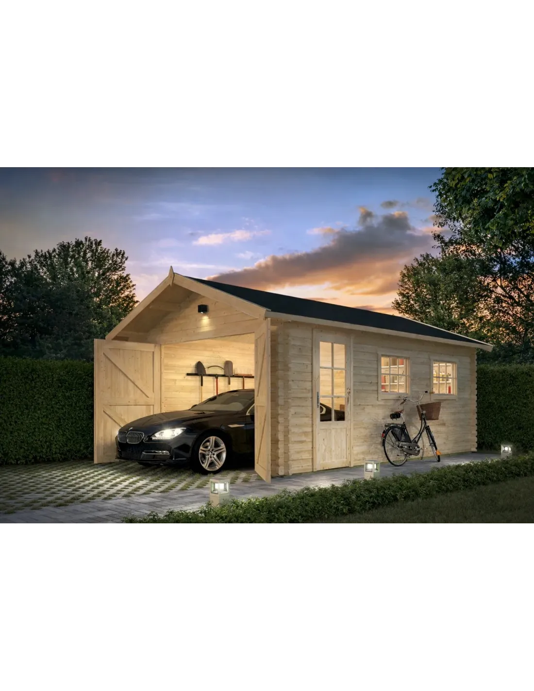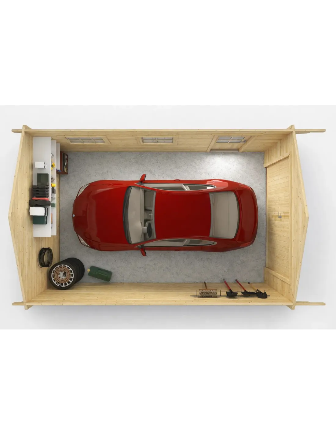 Deze houten garage voor auto en werkplaats biedt de perfecte balans tussen gebruiksgemak, esthetiek en aanpasbaarheid, waardoor u uw buitenruimte duurzaam kunt verbeteren.