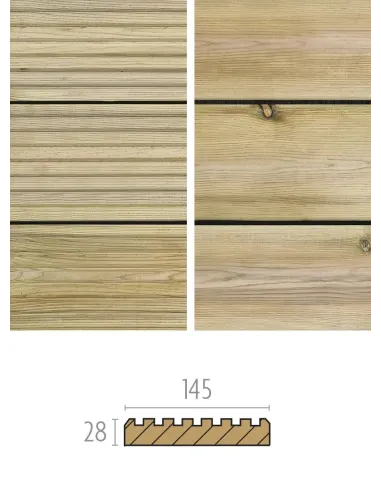 Geïmpregneerd terras (grenen) 28x145mm - glad - geribbeld
