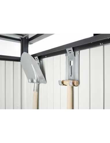 Gebruik de gereedschapsdrager om schop, hark, slangen, gereedschap, enz. op te hangen.
