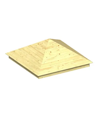 Das GIGA-houtdak besteht wie alle houtelemente aus FSC® naaldhout, das chromfrei kesseldruckimprägniert wurde. Belegen Sie das houtdakmit z.B. Bitumenschindeln. voor das GIGA-houtdakbenötigen Sie Dachbelag ausreichend voor ca. 8 m².