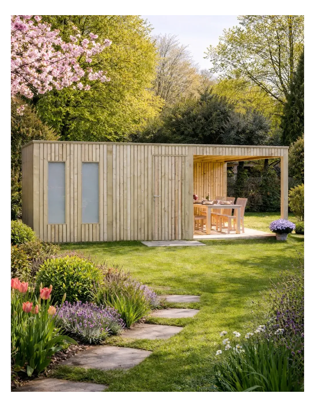 Groot tuinhuis met verticale lamellen