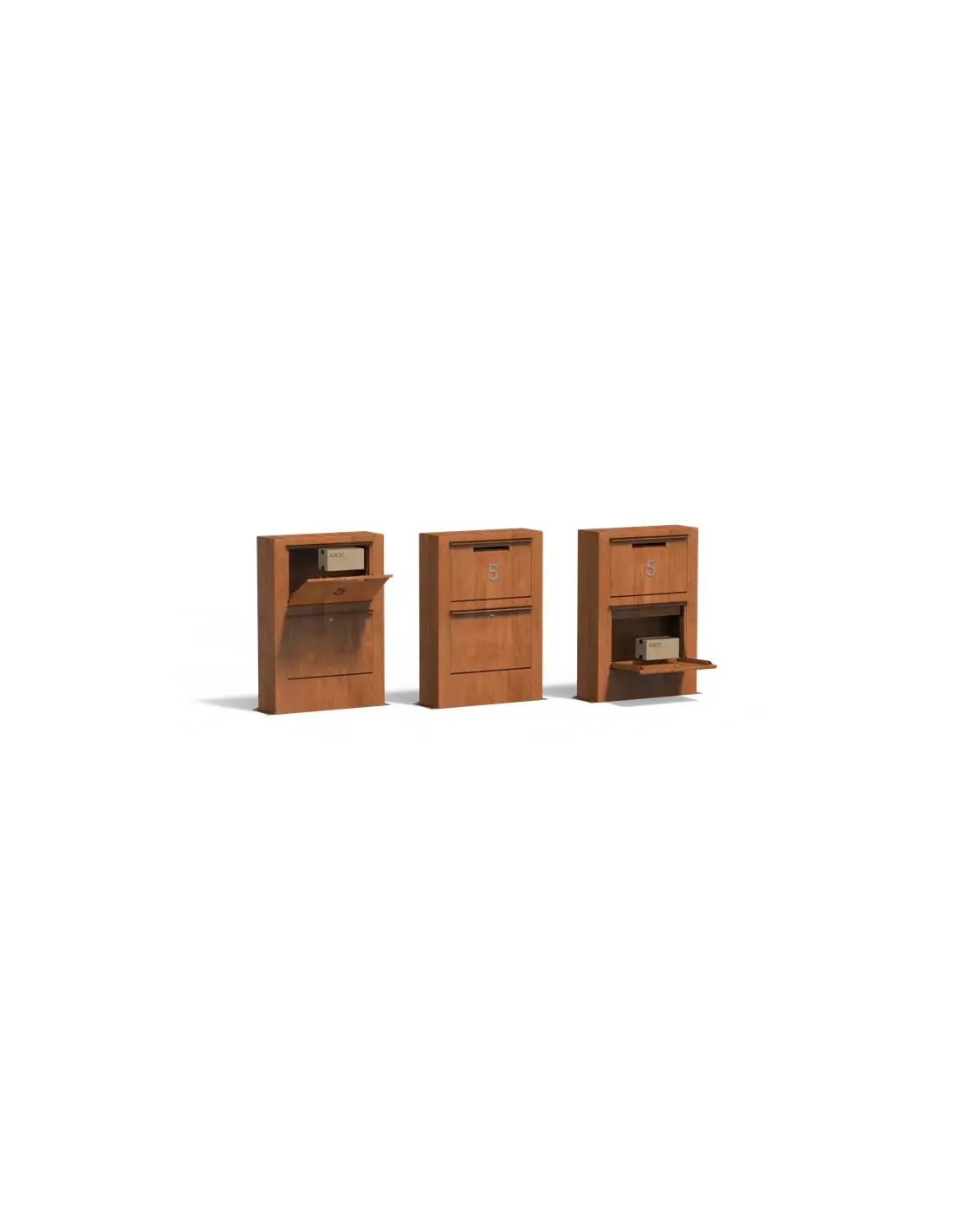 Deze brievenbussen zijn gemaakt van Aluminium of Cortenstaal, ze kunnen zowel grote brieven als grote en zware pakketten (bijv. BPost, Zalandao, Amazon, ...) herbergen omdat ze hiervoor een compartiment hebben.
