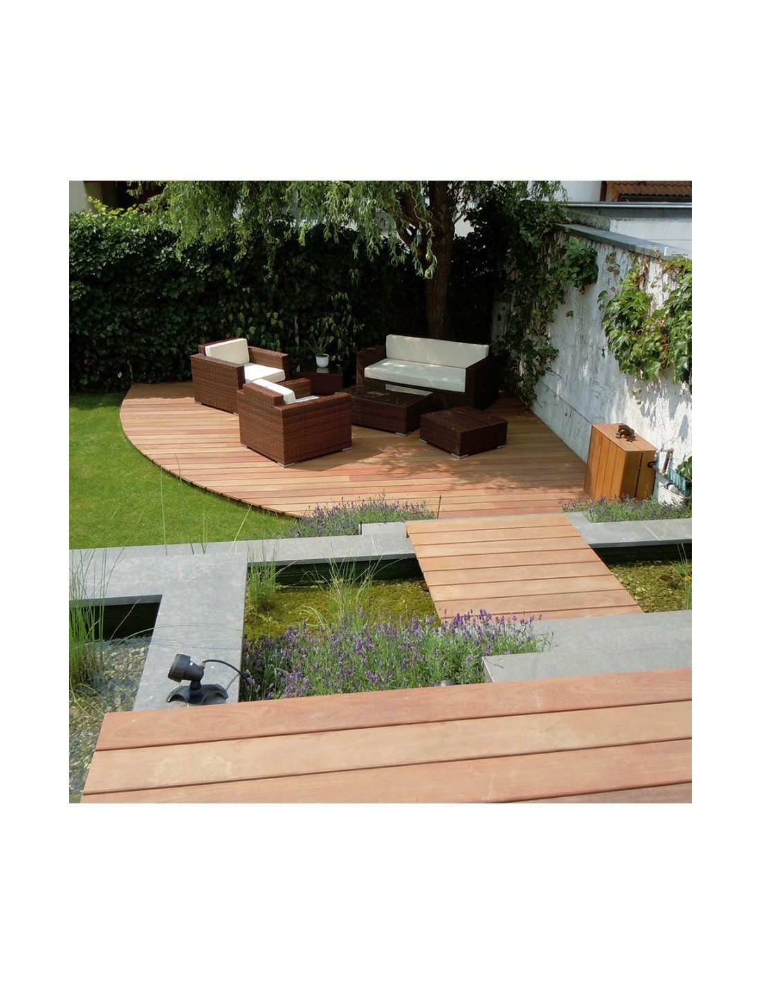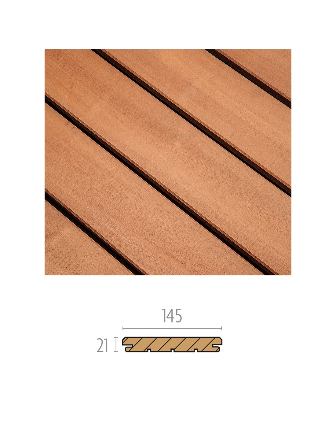 De terrasplanken in Afrikulu zijn 145 mm breed op een dikte van hout van 21 mm. De latten zijn glad afkomstig van de Congo. Het is één van de hardste en meest duurzame exotisch houtsoort, waarvan de duurzaamheidsklasse 1 is, d.w.z. dat zijn natuurlijke weerstand op meer dan 25 jaar beoordeeld is. U kan kiezen voor planken te schroeven of te klippen met het B-fix systeem. De technische eigenschappen van de Afrikaanse sequoia, of Mukulungu, maken het ideaal voor terrassen, gevelbekleding en andere buitentoepassingen. Het wordt veel gebruikt in waterbouw, ponton... Afri-kulu is zuurbestendig en daardoor geschikt voor gebruik in de chemische industrie.