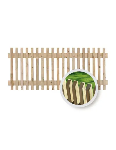 Deze houten schuttingbarrière met secties van 28 x 28 mm en 28 x 56 mm is beschikbaar in een hoogte van 80 cm en een breedte van 180 cm.