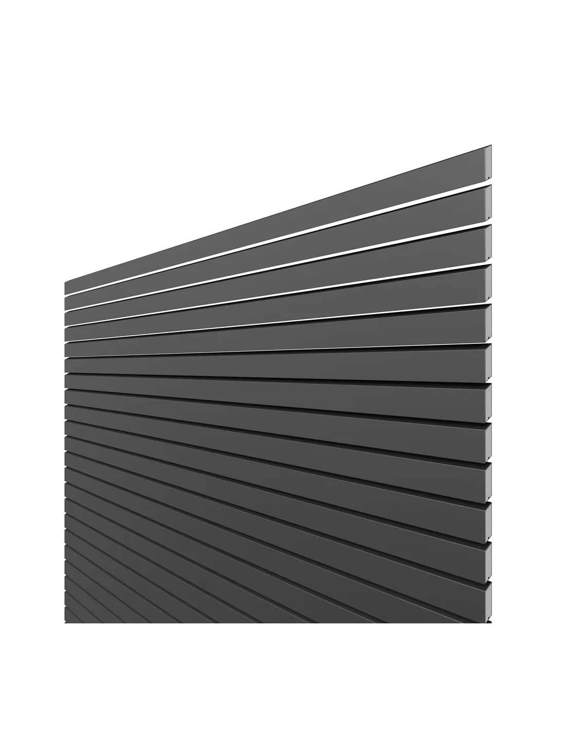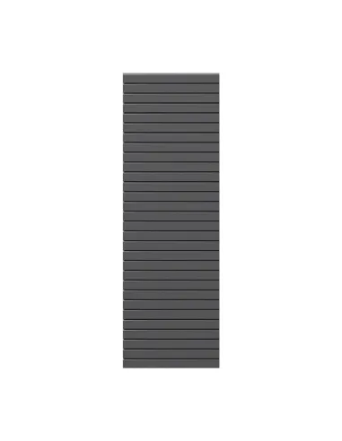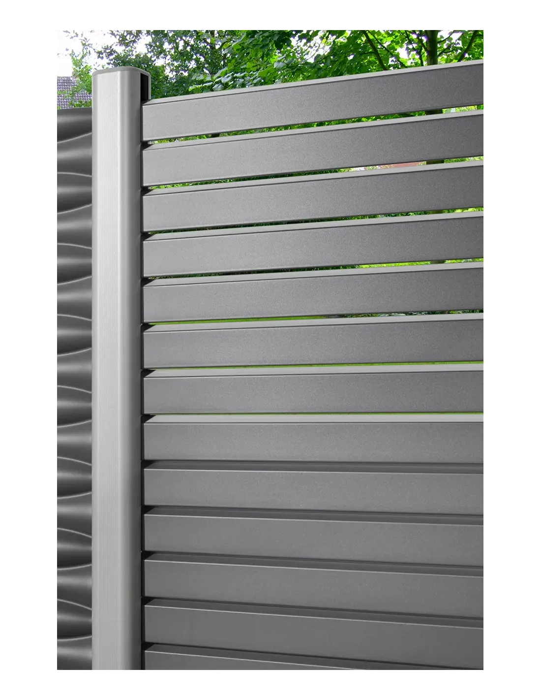 Het scherm in aluminium heeft een grotere stabiliteit en werkt nauwelijks in vergelijking met profielen in echt hout. Het schermelement is in hoogte en breedte variabel. De gewenste hoogte bekomt men door het aantal profielen en de breedte door afkorten op de werf. De set bestaat uit 30 profielen incl. profielhouders. Hou rekening met deze typische karakteristieken: de vorm van de profielen leiden zicht en licht in verscheidene richtingen. Langs de ene zijde van het scherm is er lichte doorkijk naar onderen toe, Langs de andere zijde is doorkijk naar boven mogelijk.