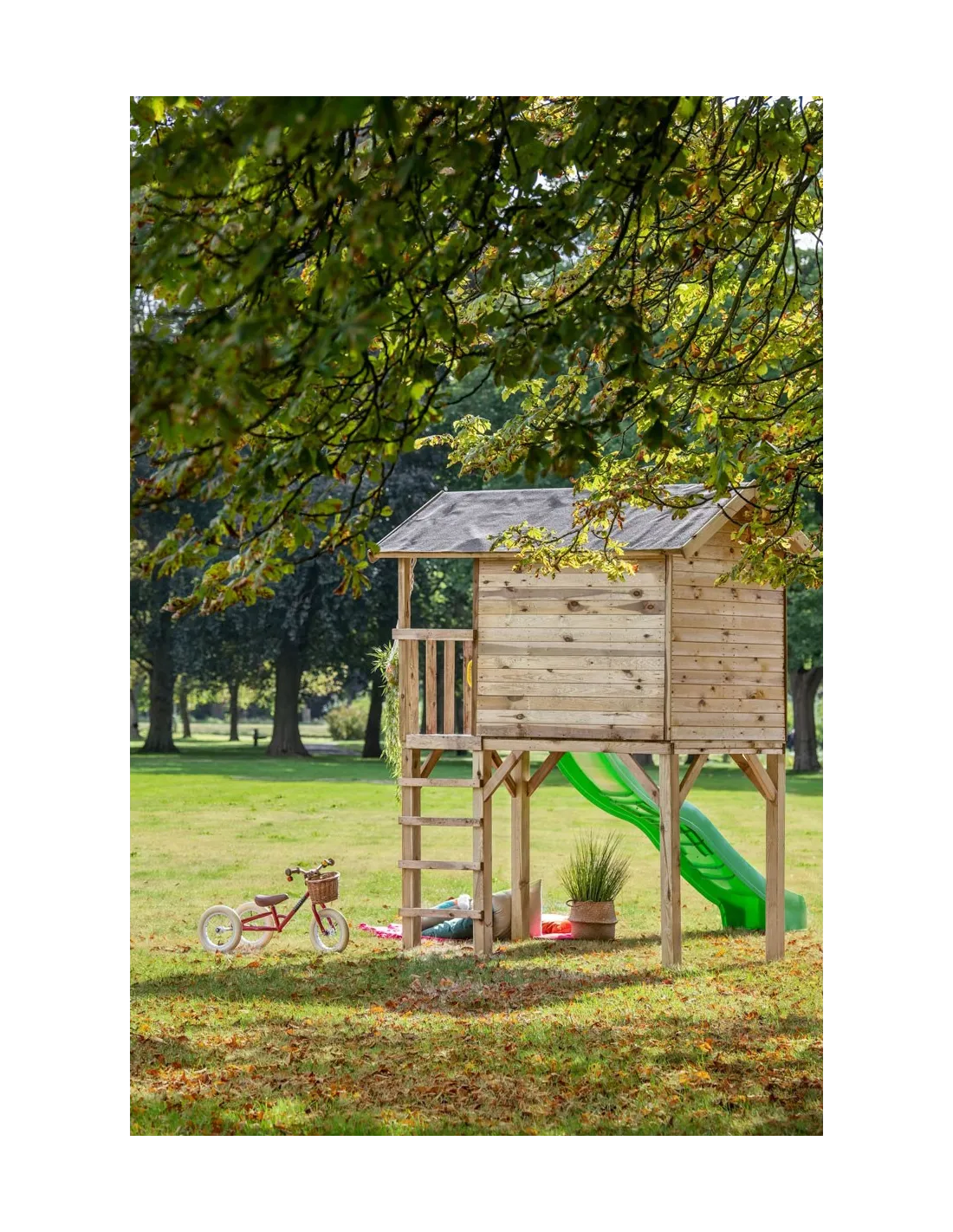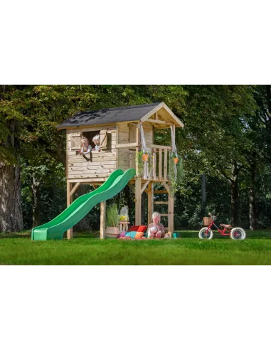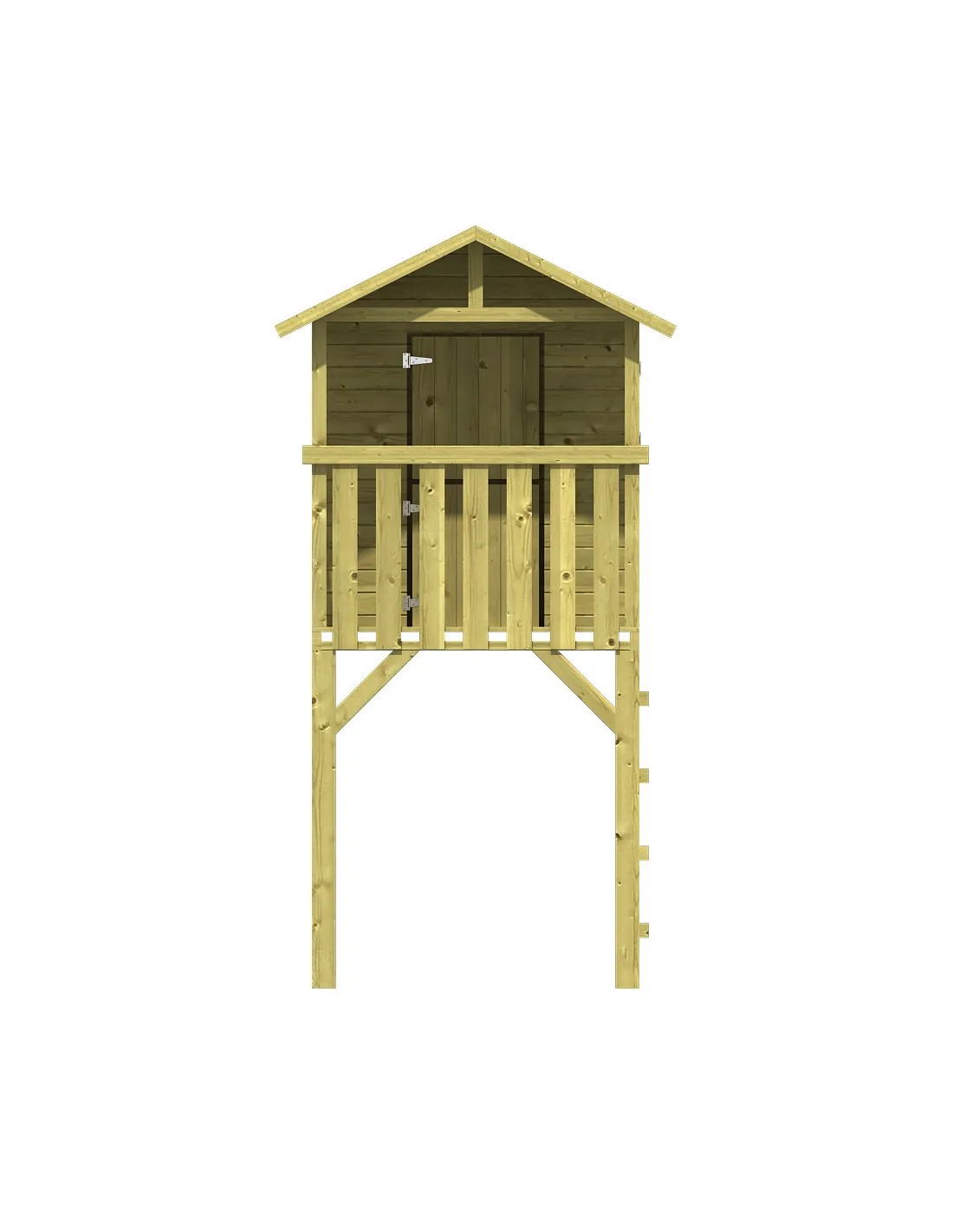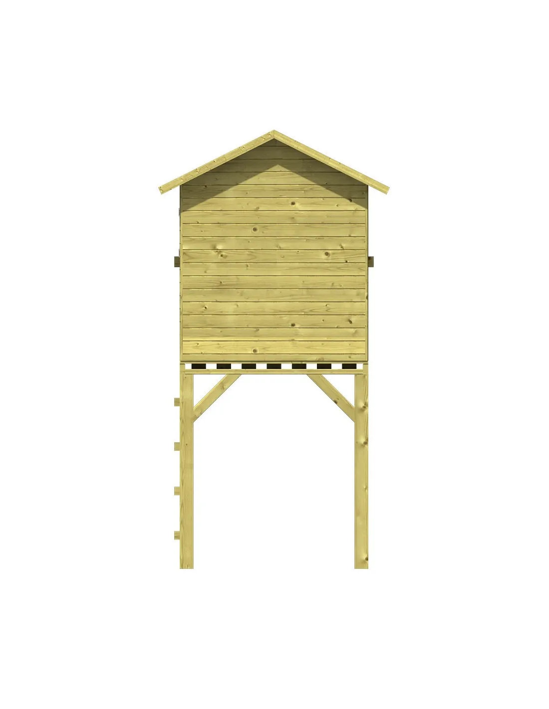 De hut is 120 cm breed, 204 cm diep en 293 cm hoog.