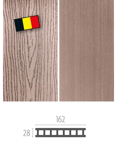 Duofuse composiet terrasplanken bestaan met holle uitvoering maar ook hun afwerking biedt verschillende mogelijkheden: vlak geborsteld, met houtnerfstructuur, fijn of grof geribbeld of verschillend afgewerkt langs beide zijden.
