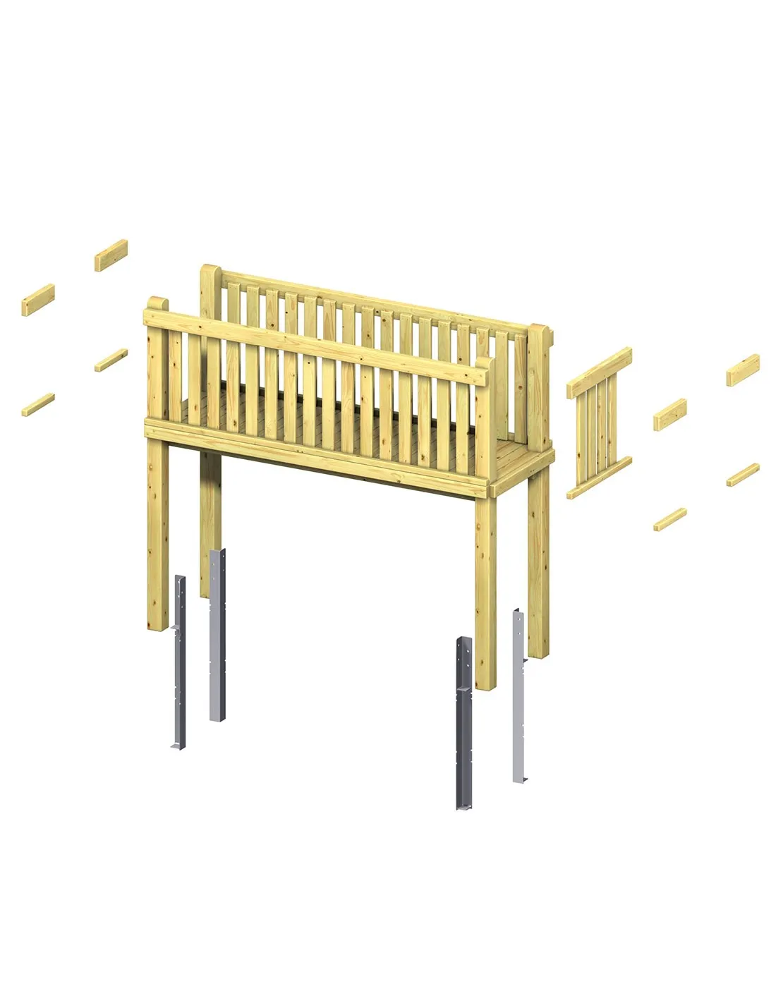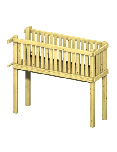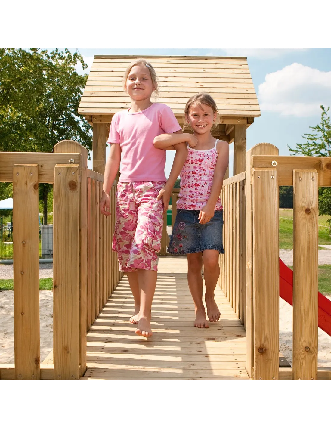 De houten brug kan worden gebruikt als uitbreiding of als verbinding tussen twee torens.