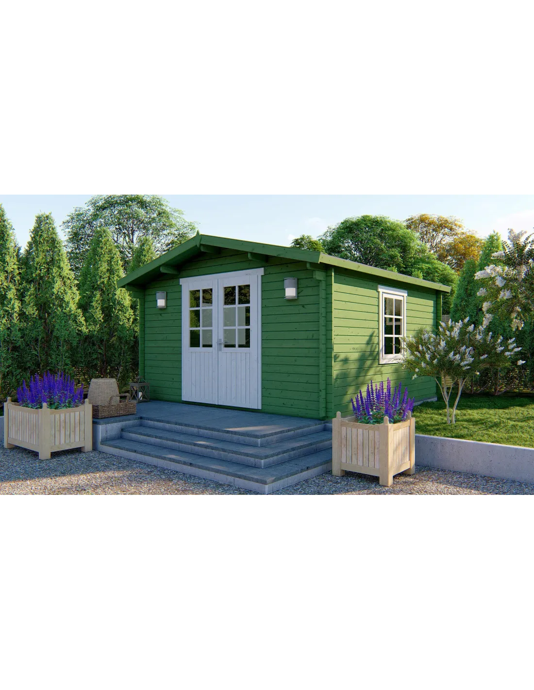 Dankzij de 40 mm dikke wanden biedt dit tuinhuis een hoge stabiliteit en natuurlijke isolatie. Het zadeldak (Apex-dak) zorgt voor een efficiënte afvoer van regenwater en een tijdloos traditioneel ontwerp.