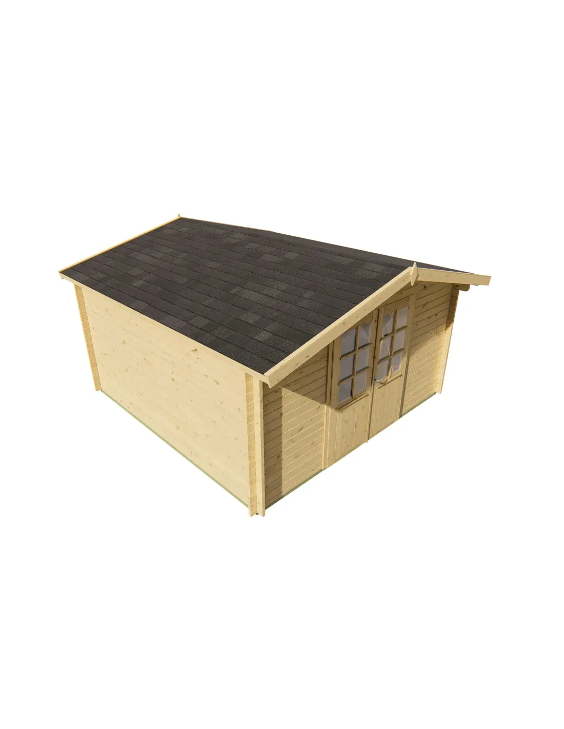 Dit houten tuinhuis van 4x4 m met dubbele glazen deur en raam is perfect om een ruime opbergruimte, een werkplaats of een multifunctionele ruimte in uw tuin te creëren. Gemaakt van geïmpregneerd of niet-geïmpregneerd, gedroogd en geschaafd sparrenhout, biedt het uitstekende weerbestendigheid en een verfijnde afwerking.